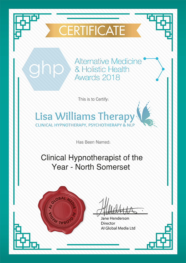 Clinical Hypnotherapist of the Year 2018, North Somerset